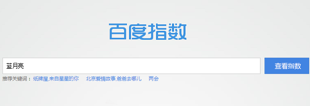 在浏览器中输入「www.index.baidu.com」-> 在搜索框中输入你想查看的关键字,比如:蓝月亮 ->点击「查看指数」即可。