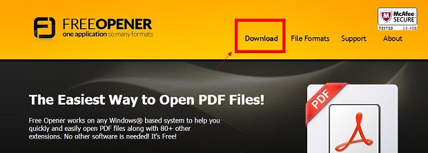 在浏览器中输入网址「www.freeopener.com」打开网站,点击「Download」下载该软件。