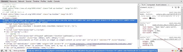 在浏览器底部弹出的「开发者工具 」窗口中,点击右下角「设置 」图标按钮。
