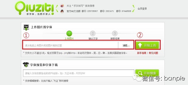 点击访问求字体网站,或者在浏览器地址栏中输入:www.qiuziti.com>点击“浏览”,上传第一步中所截取保存的文字图片>点击“开始上传”。