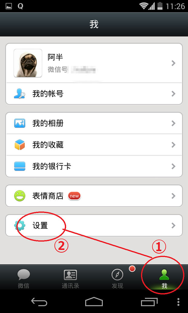 依次打开微信底部菜单中的「我」–>「设置」按钮。