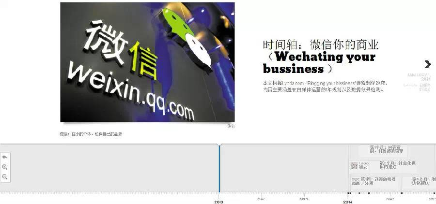 Timeline JS 使用 Google Spreadsheet 与 YouTube,Flickr , Sound Cloud 和其他媒体连接,用于创建真正好看的时间轴。你可以使用这个工具来创建一个交互式伴随可视化的时间轴来讲述你自己的故事,它可能是一个产品、一篇教程,还可以是一份新闻调查报告。点击阅读原文查看阿半“Blogging your bussiness”的课程笔记。