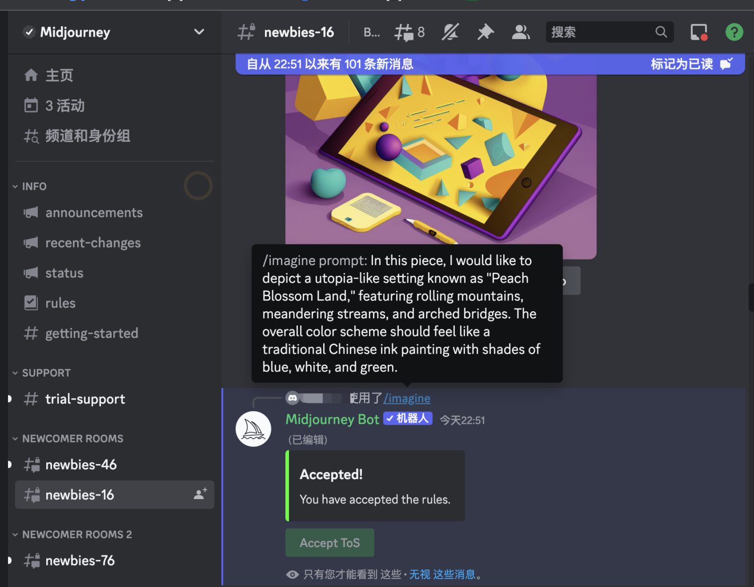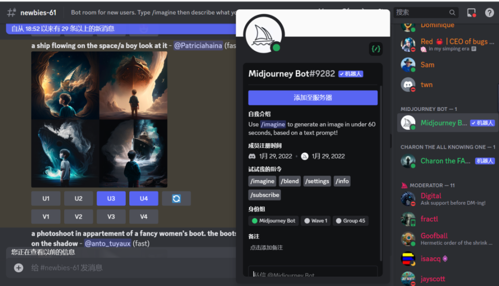先说说什么是Midjourney?Midjourney 是自筹资金的独立研究室,目前开发了同名文生图模型及应用,产品搭载在 Discord 中,用户通过与 Midjourney bot 进行对话式交互,提交 Prompt(文本提示词)来快速获得想要的图片。