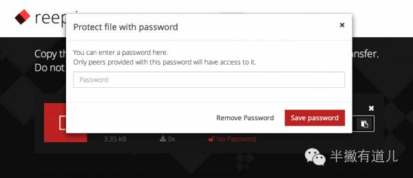 点选文件之后会生成一个随机的网页链接,同時在下方会显示文档大小和对应的下载次数,你还可以点击[ No password ]按钮为该文档添加密码。