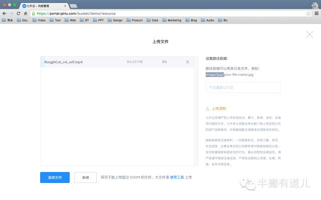 储存空间在七牛里称为对象储存,可以理解类似电脑的硬盘分区,你可以在里面上传各种各样的文件,当然包括视频。