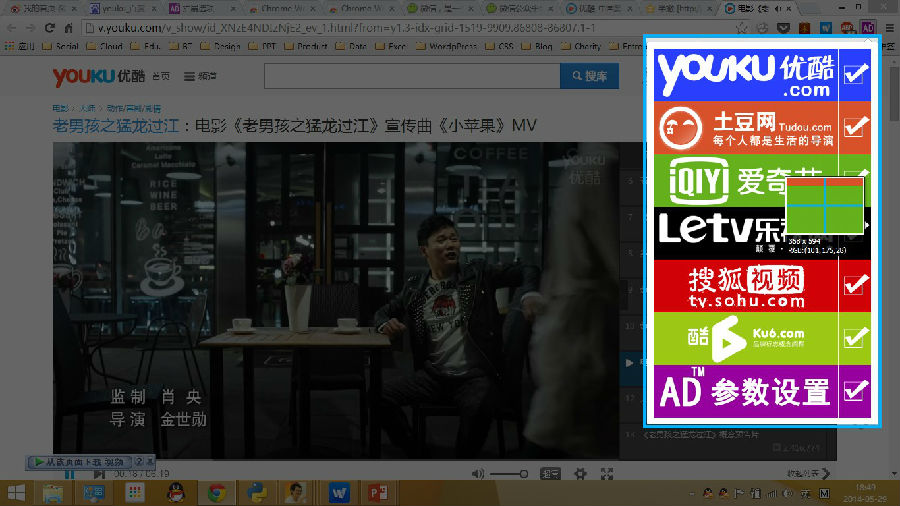 如果你也使用 Goagent + Proxy Sharp 在翻墙,不用担心去广告插件会失效,点击「优酷去广告」插件图标,进入参数设置,根据下图配置后,将 Proxy Sharp 的代理模式切换为「自动模式」即可。