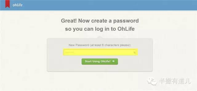 在输入栏中输入你要设置的密码,然后点击下方的“Start Using ohLife!”按钮。