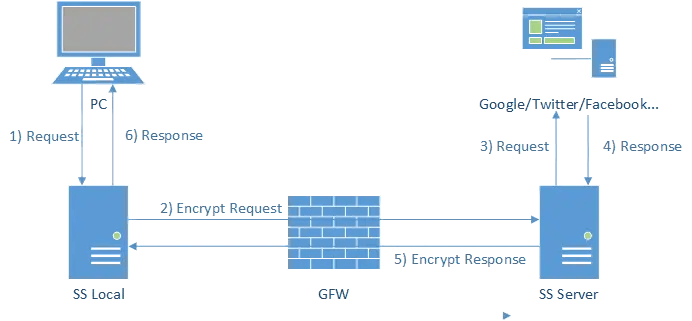 于是有人想了一个办法,就是在你的电脑和服务器上都同是安装shadowsocks ,因为本地的 Shadowsocks 客户端一般是本机或路由器或局域网的其他机器,不经过 GFW,所以解决了上面被 GFW 通过特征分析进行干扰的问题(点击了解更多原理)。